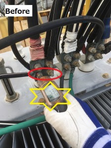 70度であることが判明しました。5日後、電線の接続箇所の劣化と判断し、ボルトナットを交換しました。