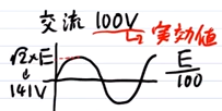 「100Vの交流」と言ったとき、その100Vは実効値を指します。よって、100Vの交流の最大値は√2×100=141Vです。